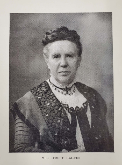 Miss Kate Harding Street taught first at the Clergy Daughters’ School in Casterton, Cumbria (near Kirby Lonsdale) from 1865 to 1869, and then at Grey Coats Hospital in Westminster. In 1881, she was appointed the first Headmistress of the newly founded Perse School for Girls in Cambridge. Miss Street was also one of the nine founders of Cambridge University’s first graduate college for women, then called the Cambridge Training College (now Hughes Hall), and remained on its committees and Board of Trustees after its establishment in 1885.