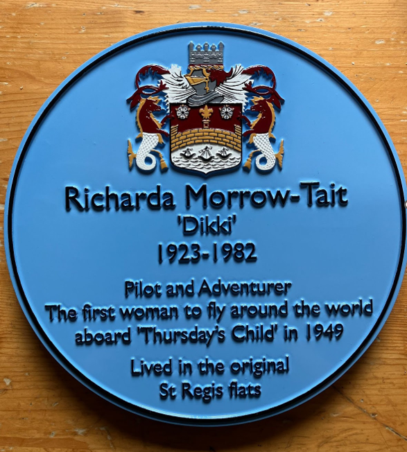 Richarda Morrow-Tait ‘Dikki’ was inspired to fly while at school during the 1930s, and with only 85 hours flying experience, she started her round the world flight lasting a year and a day, completed on 19 August 1949.  She used two aeroplanes,‘Thursday’s Child’ and ‘Next Thursday’s Child’, and following her return, Richarda wrote the story of her flight but she did not go on to publish it in her lifetime. After Richarda’s death the manuscript of her story was re-discovered by her second husband, who went on to publish ‘Thursday’s Child: The Story of the First Flight Round the World by a Woman Pilot’, which he jointly edited with Norman H. Ellison. Today, Richarda still holds the record for being the youngest woman with a navigator to fly around the world, and until 2022 retained the overall record for the youngest woman to fly around the world.